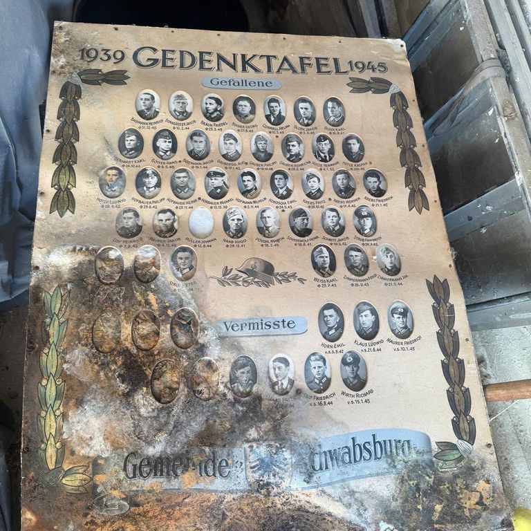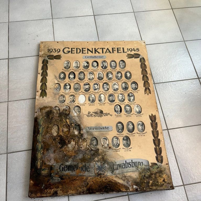 Ein bedeutendes Stück Ortsgeschichte ist aufgetaucht: Unter einem Balkon im Pfaffengarten wurde kürzlich die Kriegschronik der gefallenen Schwabsburger Soldaten aus dem Zweiten Weltkrieg entdeckt. Die historische Gedenktafel lag Jahrzehnte im Verborgenen und weist die Namen der Männer auf, die aus Schwabsburg stammen und im Krieg ihr Leben verloren haben.