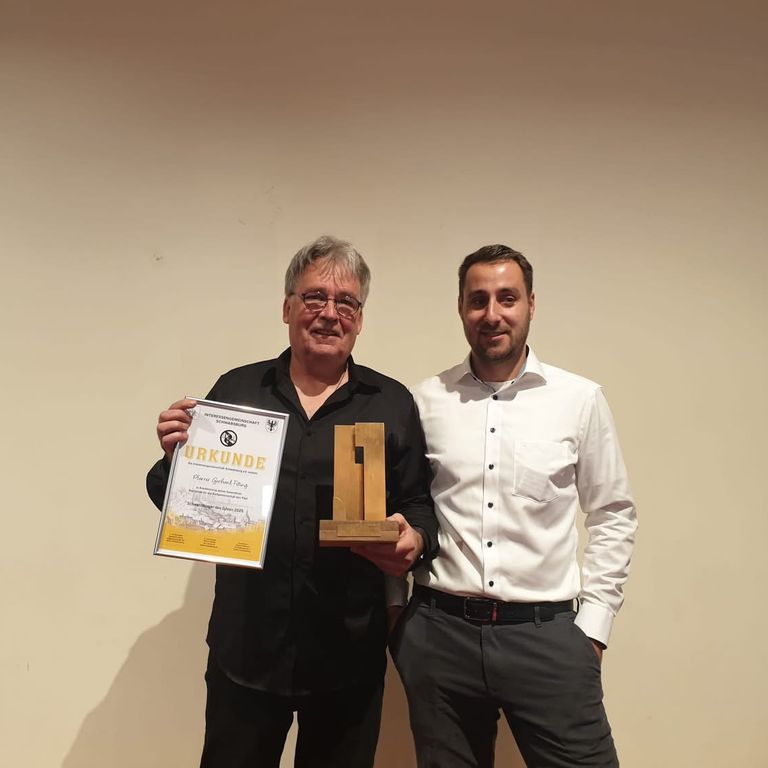 Mit der Auszeichnung würdigt die IG Schwabsburg seinen besonderen Einsatz für das Miteinander im Ort. Alexander Hoyer betont bei der Übergabe: "Pfarrer Fitting hat Schwabsburg mit Herz, Wort und Tat bereichert."