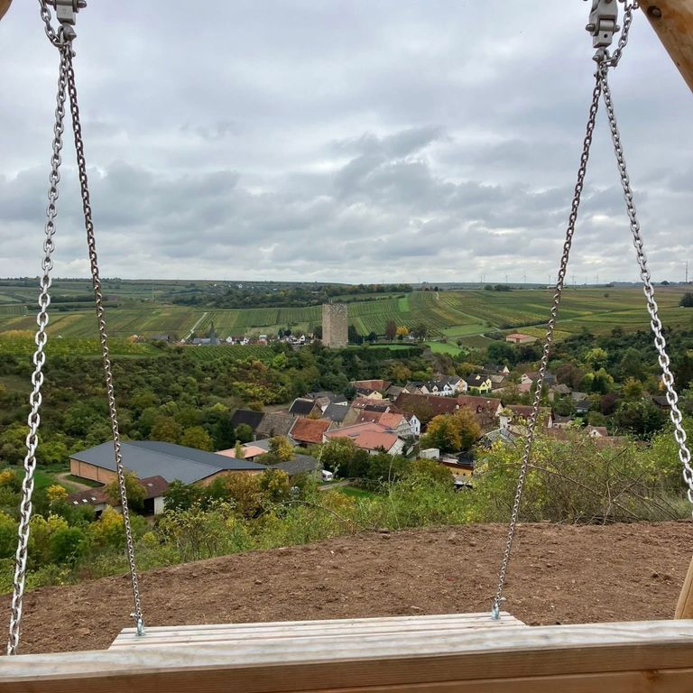 Die Schaukel mit herrlichem Ausblick über Schwabsburg und die rheinhessische Landschaft ist bereits ein beliebter Anziehungspunkt. In den kommenden Wochen wird der Platz noch weiter touristisch aufgewertet.