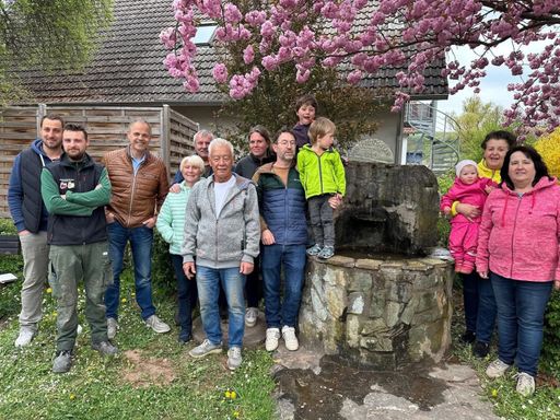 Helferkreis der IG Schwabsburg reinigt Weedplatzbrunnen für den Sommer